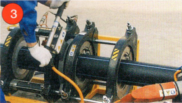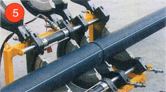 4. 加熱完畢,取出加熱板,迅速接合兩加熱面,升壓至熔接壓力并保壓冷卻。